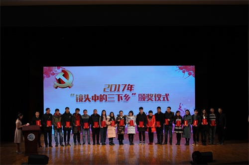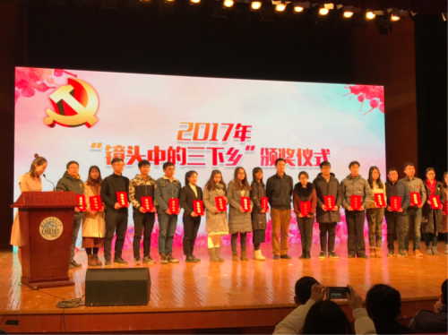 2017年“镜头中的三下乡”活动,是由团中央学校部、团中央网络影视中心指导,中国青年网、新华网联合主办。据悉,共计1200余所大中专院校的10000余支团队提交参赛作品60000余件,覆盖学生数量超过100万人。其中,药生学院2017科技支农服务队(指导老师:过七根)在2017年“镜头中的三下乡”评比中荣获团中央“优秀报道奖”;化环学院科技支农服务队(指导老师:刘小风)在2017年“镜头中的三下乡”评比中荣获团中央“优秀摄影奖”。