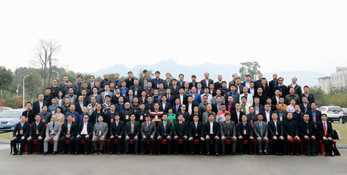 会议结束后,校领导、来宾与全体校友代表在逸夫图书馆广场上合影留念。