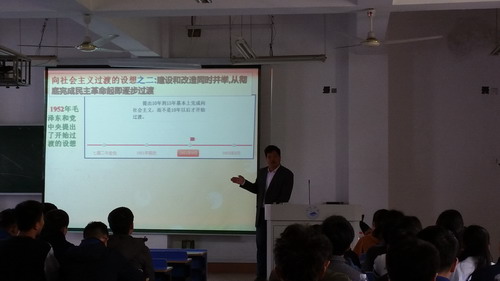 课后,在同学们的热情邀请下,陈春生副校长对本节课程进行了点评。陈副校长指出,学校一直以教学工作为中心,恰逢今年本科审核评估,思想政治理论课是思政教育的主渠道,思政课理论性较强,指导性意义大。陈副校长认为,同学们的学习状态精神饱满、听课认真;赵文老师的课件内容丰富,授课能围绕课程重点,清楚地讲述了新民主主义革命的历史地位和意义,波澜壮阔的历史与现实相联系,带给大家深厚的历史感和理论思考。陈副校长希望同学们能够在课上认真学习,课下细细体会,将思想政治理论课和学习、生活结合起来,了解中国革命历史,领会党的理论对国家、民族、社会发展的伟大意义,让自己成为有觉悟、有责任担当的大学生,为祖国的社会主义事业发展做出贡献。同学们对陈副校长的讲话报以热烈的掌声。