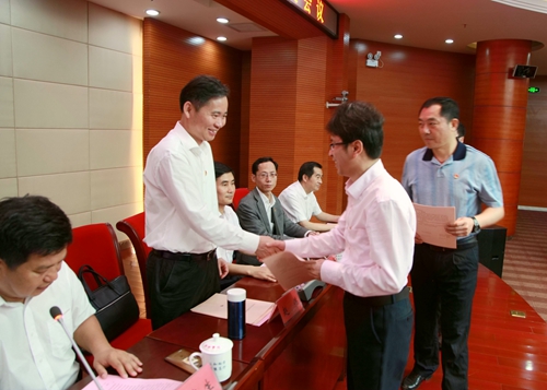 会上,校党委书记赵伟代表学校党委与各二级单位党组织负责人签订了“落实意识形态工作责任制”责任书。学生处、教务处、保卫处、浔东校区管理办、八里湖校区管理办、基础医学院、政法学院、会计学院、机材学院、外国语学院等10个单位的党组织负责人作为代表向校党委书记赵伟同志签交了“落实意识形态工作责任制”责任书。