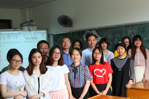 课后,赵伟还主动与授课教师任群英老师和在场的同学们合影。
