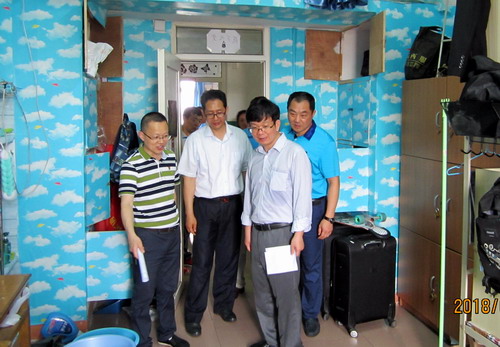 为落实《九江学院校园环境卫生专项整治活动》要求,检查本学期宿舍落实校园环境卫生专项整治工作成果,部署下阶段宿舍环境卫生综合整治的具体工作,以良好的宿舍环境迎接本科预评估专家组进校检查,6月7日下午,王万山副校长在学生处、学生宿舍管理中心负责同志的陪同下,带领主校区各二级学院党委书记对主校区学生宿舍环境卫生进行了全面检查。