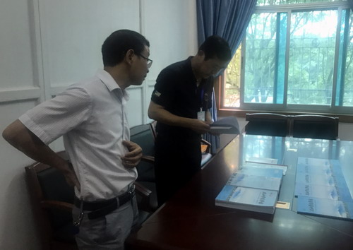 10:50-11:10,周忠伟教授来到学报编辑部进行走访。与学报编辑部主任吴国富进行交流后,调取了2017年度学报投稿总量、发文总量、学校教师投稿及发文总量、教师指导学生发表论文数量及具体篇目等相关统计材料。