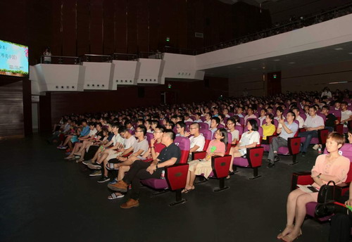 在温馨欢快的氛围中,校领导与嘉宾一起上台与演职人员合影留念。