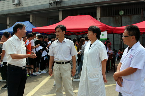 9月11日上午,杨耀防副校长在校医院院长贾宗林等同志的陪同下检查指导2018级新生入校复查体检工作,并看望了工作在体检一线的医护人员和正在体检的2018级学生,给他们送去亲切的问候与关怀。