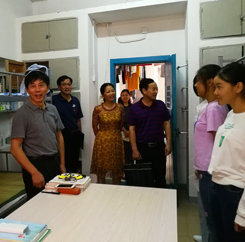 李书记一行先后到护理学院实验楼、护理学院及浔东管理办公室的办公楼、浔东食堂、护理学院学生宿舍等地进行实地调研。在护理学院实验楼,了解了学生的实验实训操作计划,听取了护理学院前期对实验室的建设规划的工作汇报。在浔东校区学生食堂,李书记仔细询问了食堂的经营情况、采购情况及卫生安全情况,他指出,要严格物资的采购,杜绝以次充好,切实保障学生的食品安全。随后,李书记一行来到学生宿舍,走访了护理学院2018级新生寝室,与新生亲切交流,了解她们的学习生活情况及遇到的困难,对学生寝室的干净整洁的环境提出了表扬。