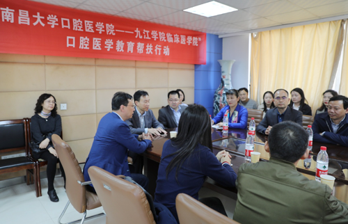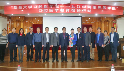 中华口腔医学会口腔医学院系帮扶行动主要是为了把国内知名口腔院校的优秀优质资源辐射到相对薄弱的口腔院系,倡导口腔医学院之间的帮扶行动,提高在校生的教学质量,在源头上保证口腔医学人才的质量。而此次“南昌大学口腔医学院——九江学院临床医学院”对口帮扶活动的正式启动,将帮扶基层行动落到实处,不仅有助提高我校口腔医学专业教育、医疗技术和服务水平,并且,对我校口腔医学教育事业提质增效、实现跨越式发展必将起到良好的促进作用,同时对区域内医疗卫生事业全面协调可持续发展、深化医药卫生体制改革,推进分级诊疗、实施健康中国战略具有重要的意义。