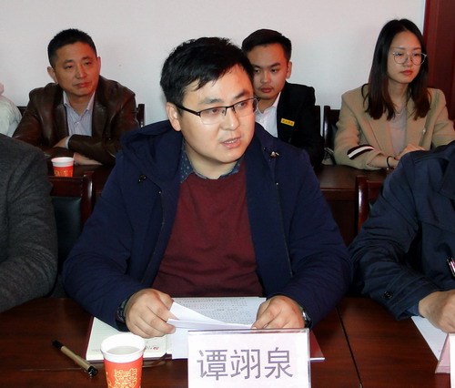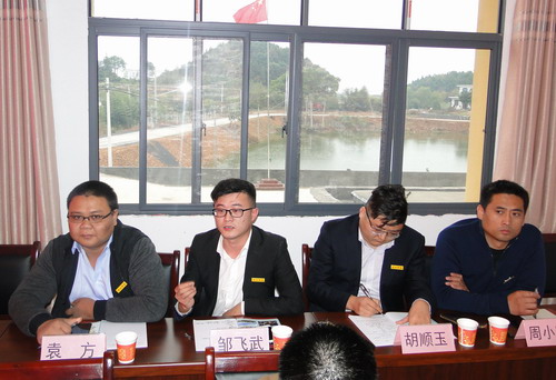 九江学院驻村第一书记谭翊泉从“东山现状,值得奋斗;东山发展,值得期待;东山未来,值得拥有”三个方面汇报了东山村脱贫攻坚及寻求校友合作事宜。