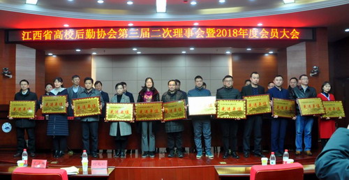 会议对全省高校后勤工作先进集体和优秀个人进行了表彰和颁奖,我校荣获2018年江西省高校后勤工作先进集体,蔡飞等4位同志获得优秀个人。