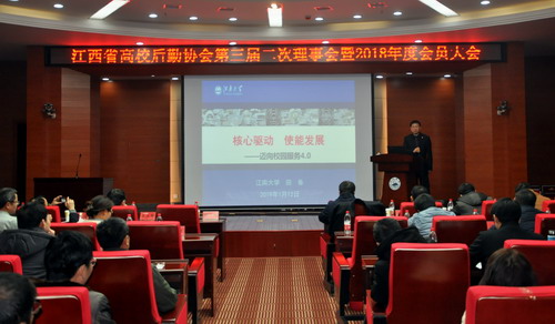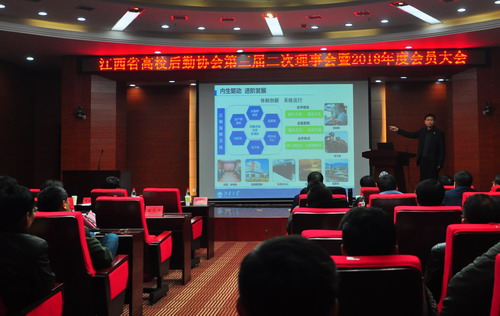 江西省社联许芦峰处长和省教育厅胡若峰处长分别做了讲话,教育后勤协会会长汤颖松做了《甘为后勤孺子牛 服务教育新时代》的江西高校后勤协会2018年工作报告。