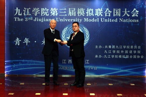 3月22日上午,九江学院模拟联合国协会成立暨第三届模拟联合国大会开幕式在逸夫报告厅举行。校党委副书记魏立平、中国模拟联合国常务理事、资深外交官华黎明大使出席开幕式,本次模联大会以“青年·未来”为主题,有来自华中科技大学、武汉大学、华东交通大学、长沙学院和我校的50名代表参加,学生处、团委、外国语学院负责同志参加了大会。开幕式由校团委副书记任丹阳主持。
