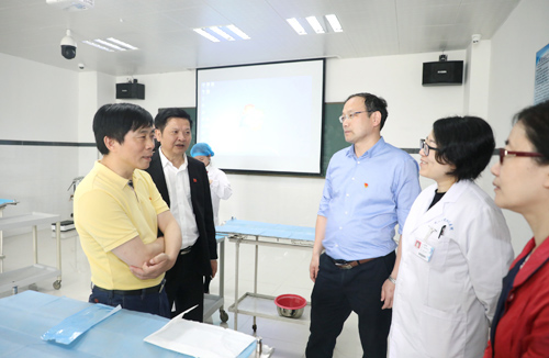 李广欣书记一行先后前往临床医学院/附属医院新门诊综合大楼基建工地、住院部、门诊大厅、教学楼、学生宿舍和临床技能中心等处,对新大楼施工进度和内部装修、医疗秩序、教学环境与学生安全、医学生临床技能培训等情况进行了实地调研,详细了解相关工作内容并作现场指导。