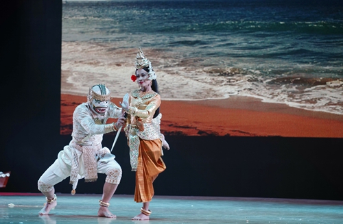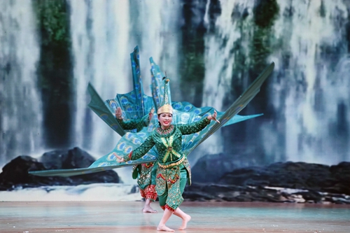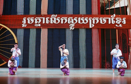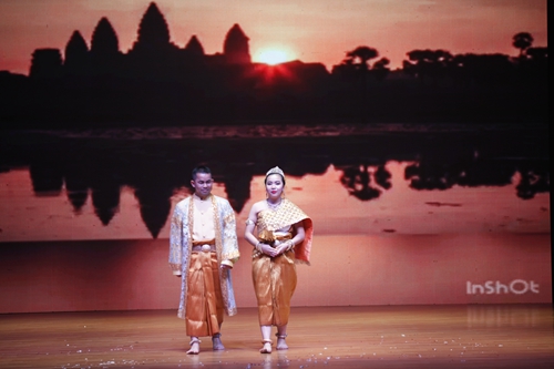 晚会在柬埔寨皇家学院的开场节目《祝福舞》中拉开序幕,表演者跳着优美的舞蹈,把金银花从天空洒下来,向观众表示着最美好的祝愿。