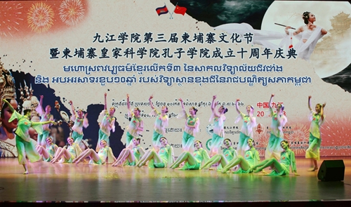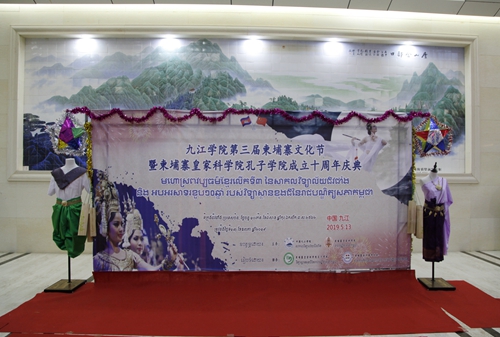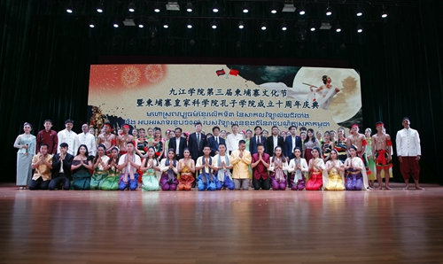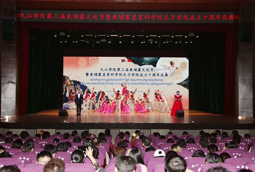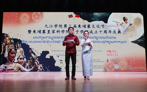 2019年是九江学院作为承办院校建设的柬埔寨皇家科学院孔子学院揭牌10周年,5月13日晚,“第三届柬埔寨文化节暨柬埔寨皇家科学院孔子学院成立十周年庆典晚会”在九江学院在礼堂举行。来自柬埔寨的专家团、艺术团成员以及我校柬埔寨留学生和中国师生欢聚一堂,共叙中柬传统友谊,共享孔院发展成果,共商人文交流事宜。