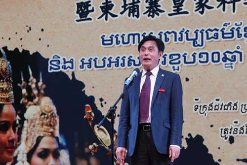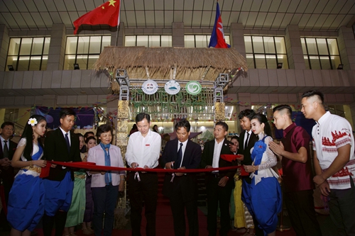 当晚7点整,校党委书记赵伟、中国驻柬埔寨前大使张金凤、柬埔寨皇家科学院院长宋独(Sok Touch)、柬埔寨驻中国学生会名誉会长吴天(Um Vuty),共同为“第三届柬埔寨文化节暨柬埔寨皇家科学院孔子学院成立十周年”庆典剪彩。