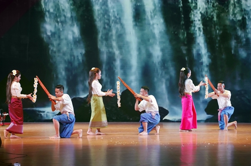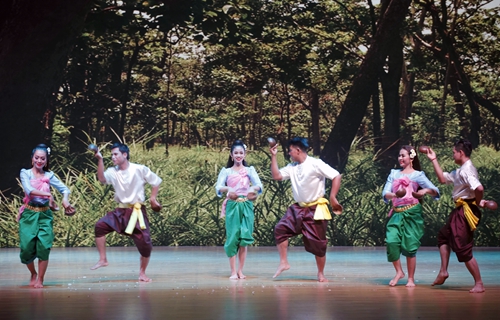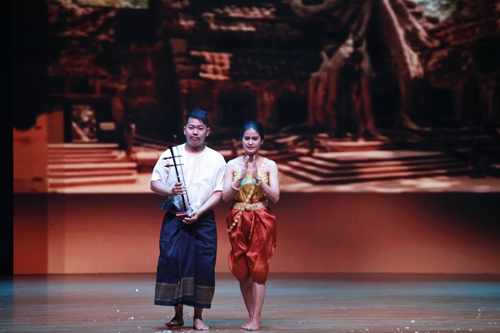 晚会上,来自柬埔寨的艺术家们和九江学院的柬埔寨留学生,为大家展现精彩绝伦的古典高棉艺术。柬埔寨皇家科学院代表团带来了《孔雀舞》、《敲椰壳舞》、《美人鱼舞》、《耕祭舞》,九江学院的柬埔寨留学生们表演了《淑女舞》、《笙舞》、《水布舞》,这些富有高棉特色的舞蹈,呈现了柬埔寨人民沟通交流、祭拜神灵、感恩自然、庆祝节日等场景。柬埔寨的艺术家演奏了四种柬埔寨传统乐器,或深沉,或细腻,或委婉的曲调,使观众感受到了浓郁的古典高棉文化气息。