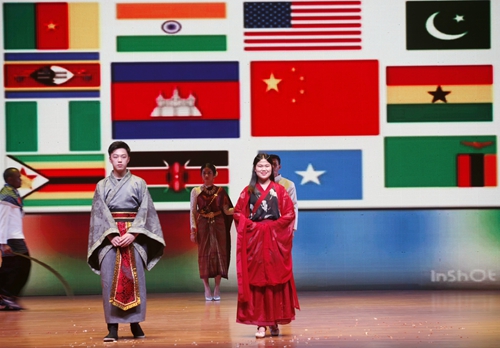 由九江学院的中国学生和外国留学生们带来的各国服装秀展示了中国、柬埔寨、印度、尼日利亚、美国等13个国家的传统服饰,使现场观众了解到不同国家在服饰文化上的审美品味,带来了一场视觉的盛宴。