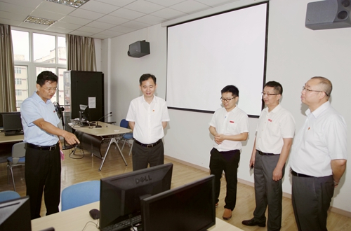揭牌仪式结束后,与会领导来到教师教育实验实训中心,实地查看了中心各类实验、实训设备,并对教师教育学院实验实训中心建设提出了指导性意见。