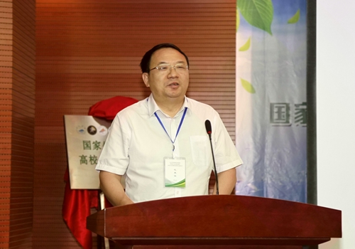 江西省生态文明办专职副主任刘兵在开幕式上讲话。他代表江西省发改委、省生态文明办,对本次大会的顺利召开表示热烈的祝贺!他指出,由九江学院江西长江经济带研究院发起,联合国家生态文明试验区四省十所高校相关学科机构,共同成立国家生态文明试验区高校生态文明研究联盟,构建面向生态文明建设研究的开放性科研交流平台,具有十分重要意义。要进一步提升生态文明研究的协同创新能力,探讨长江经济带绿色发展过程中面临的现实问题,完善生态文明制度体系发展路径,充分发挥高校科技与人才优势非常必要。