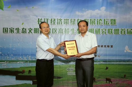 江西省生态文明办专职副主任刘兵为联盟理事长单位我校江西长江经济带研究院授牌。