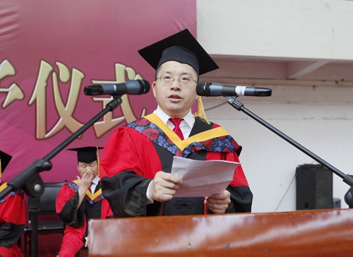 副校长王万山宣读授予学士学位学生名单,副校长陈春生宣读了2019届毕业生名单。2019年,我校一共有9552名毕业生在规定年限内修完《九江学院学生培养方案》规定内容,达到毕业要求,其中,76个本科专业的5007名学生毕业,57个专科专业4545名学生毕业。根据各二级学院学位评定委员会分会初审,校学位评定委员会批准,我校5001名毕业生获得学士学位。