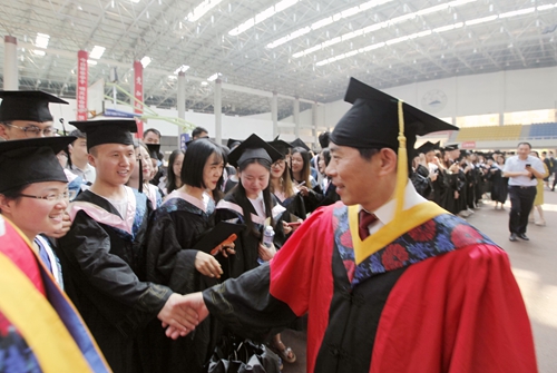 伴随着骊歌,毕业典礼在2019届全体毕业生们抛帽欢呼中结束,赵伟、刘晓东等校领导来到同学们中间,与他们合影、握手、话别。毕业生们徘徊在田径馆内外,和老师同学拍照留念,依依惜别。