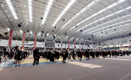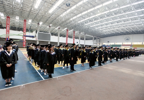 毕业典礼在雄壮激昂的国歌声中拉开帷幕。