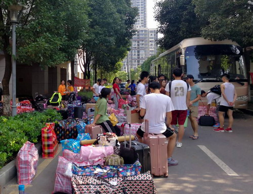 6月26日下午18点30分,随着最后一辆搬家车辆抵达主校区12栋宿舍楼下,标志着八里湖校区搬迁任务顺利完成。