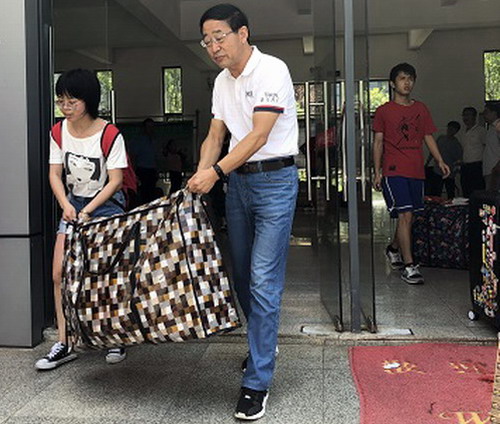 6月26日下午,魏立平副书记亲临搬迁现场,在学生宿舍12栋、35栋检查指导搬迁工作。在搬迁现场,魏立平副书记与正在收拾行李物品的学生进行亲切交谈,询问学生的入住感受和日常生活安排情况。魏副书记表示欢迎同学们回到主校区,回归九江学院大家庭。他说,主校区校园氛围好,文体资源多,可以体验更加丰富多彩的校园生活,希望大家尽快融入这个大家庭,给大家庭带来更多的严谨学风和阳刚之气。