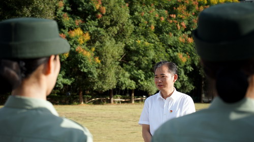 国庆前夕,9月24日下午,校党委书记赵伟来到学校西大门旗台下,看望慰问正在训练的国旗班学生。党办、校团委有关负责同志陪同。