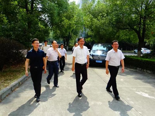 在行政楼大厅,朱敏副校长认真观看了我校新校区沙盘模型。赵伟向朱敏副校长详细介绍了我校校区资源整合项目有关情况。