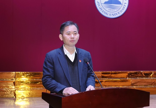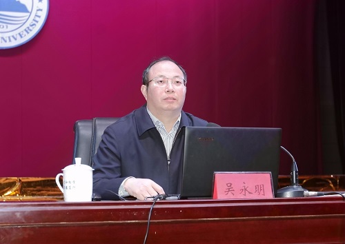 根据省委统一安排,11月26日上午,学习贯彻党的十九届四中全会精神省委宣讲团宣讲报告会在我校主校区大礼堂举行。省委宣讲团成员、省委宣传部副部长、省委教育工作领导小组副组长吴永明作宣讲报告。校党委书记赵伟主持报告会。校长刘晓东,副校长纪岗昌、王万山、杨耀防、夏启国,纪委书记李广欣,副校长陈小林,校党委委员王殿元、冯健,及副科以上领导干部、师生代表600余人参加报告会。