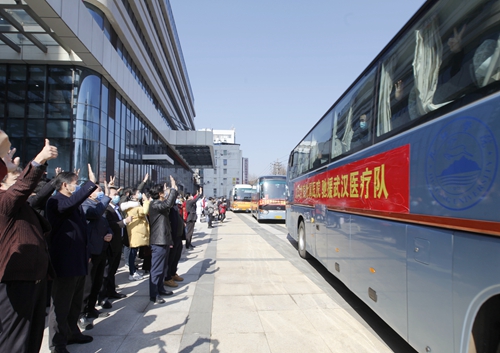 市委书记林彬杨在出征前一天作出重要批示:要求大家以坚定的信心、顽强的意志、精湛的医技、崇高的医德打赢这一战。市委副书记熊永强在出征仪式上,希望大家牢记习近平总书记的殷切嘱托,把人民群众生命安全和身体健康放在第一位,全力以赴投入到抗击疫情和救治患者工作之中。市政府副市长李军代表市政府向即将应召出征的附属医院医疗队员们表达敬意!