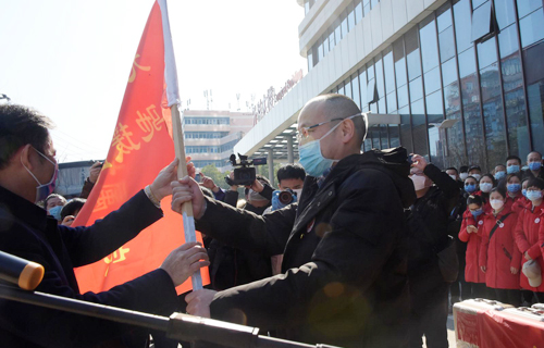 校党委书记赵伟为医疗队授队旗,并对即将出征的医疗队员们殷殷嘱托。他说,大家积极响应党的号召,主动请缨,驰援湖北,充分彰显了医者的家国情怀和责任担当,九江学院和附属医院为你们感到骄傲!希望大家牢记使命担当,发挥专业特长,贡献最大力量,圆满完成任务。同时,大家一定要加强自身防护,一定要注意保重身体,全校广大师生盼望大家早日平安凯旋!
