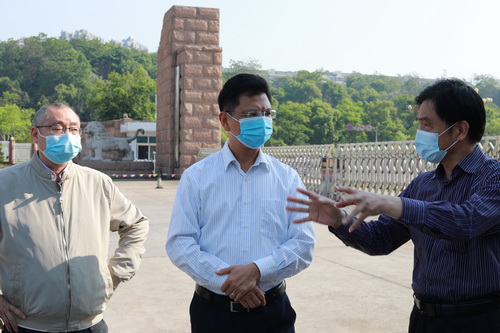 4月27日上午,刘晓东校长在主校区考察复学防疫准备工作,副校长杨耀防、夏启国、陈小林陪同,党院办、宣传部、保卫处、后勤管理处、学生处、校医院等部门负责人参加。