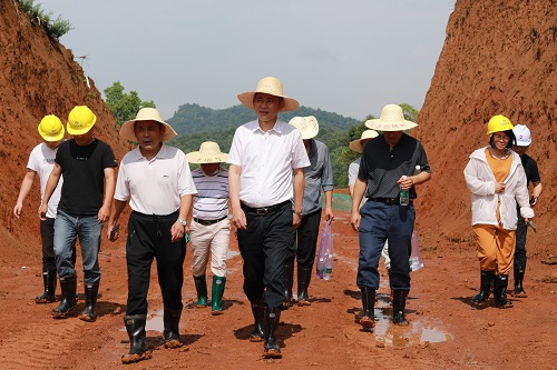 经过一场暴雨的洗涤,新校区显得格外葱郁,满山苍翠、云雾缭绕,仿佛一幅绝美的山水画。赵伟一行在工作人员的引领下,穿过小径、爬上陡坡、踏着泥泞,对新校区研究生院、图书馆、博物馆、校区小镇等规划建设项目用地逐一实地查看。赵伟对新校区项目前期的征地拆迁、土地林地报批和三通一平工作予以肯定,对新校区建设当前工作提出了明确要求。