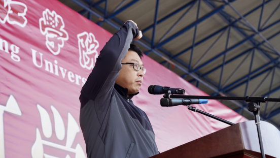 他强调,一年一度的校运会是学校检验竞技体育水平和素质教育成果,推动体育运动深入开展,增强师生员工身体素质的重要举措。希望全体运动员大力弘扬“更高、更快、更强”的奥林匹克精神,勇于挑战、敢于超越,赛出水平、赛出风格;希望全体裁判员和工作人员恪尽职守、公平公正,热情服务、全力保障;希望各有关单位团结协作、密切配合,精心组织、科学管理,确保本次运动会取得运动成绩和精神文明的“双丰收”;希望全校师生员工以本次运动会为契机,进一步营造热爱体育运动的浓厚氛围,自觉养成体育锻炼的良好习惯,将拼搏进取、奋勇争先的体育运动精神,转化为学习、工作中的动力,为建设特色鲜明区域领先的综合性应用型大学作出更大贡献。
