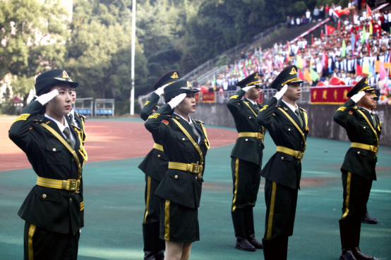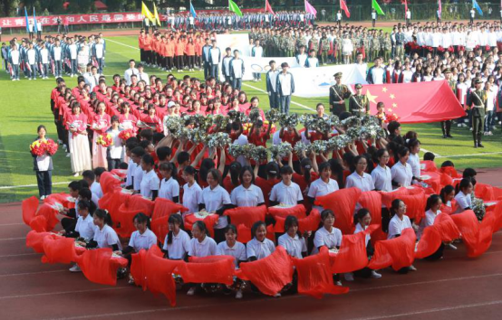 入场式结束后,国旗班的同学们迈着矫健整齐的步伐走向升旗台,在庄严的国歌声中,在全体师生的注目礼下,五星红旗冉冉升起,飘扬在学校的上空。