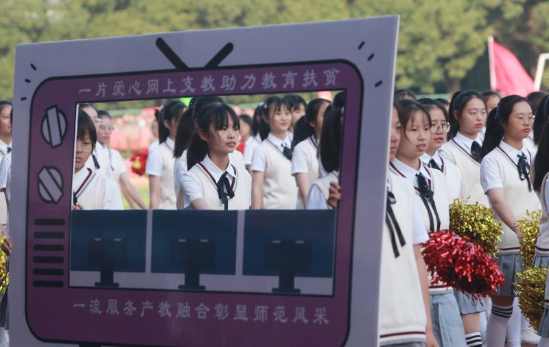 教工代表队齐着休闲装,踏着整齐的步伐进行了队列表演。他们“站得稳”三尺讲台,也“玩得转”各项运动,凭实力“圈粉”无数,充分展示了九院教师热爱生活、热爱运动的青春风貌。