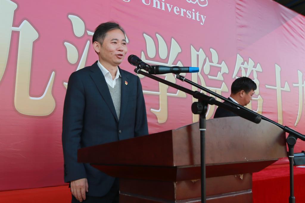 在运动员代表、裁判员代表宣誓后,校党委书记赵伟宣布:九江学院第十九届运动会开幕!