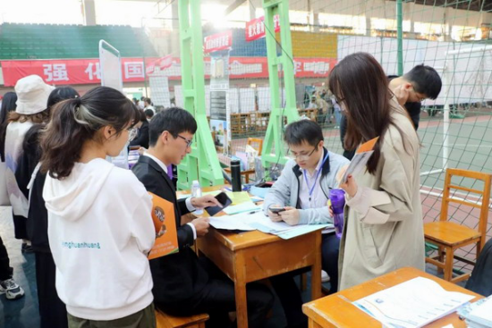 招聘会持续到下午1:00,首轮面试基本结束,复试工作则转至竞知楼、竞秀楼各教室进行。据统计,有近1000多人次和招聘单位达成了就业意向。