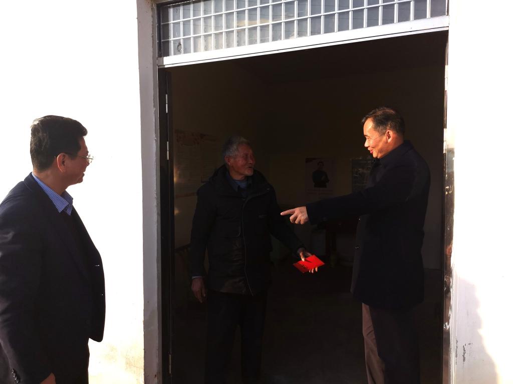 为贯彻落实江西省扶贫开发领导小组《关于春节前开展走访慰问活动的通知》精神,1月11日,校党委书记赵伟、校长刘晓东深入我校扶贫点武宁县官莲乡东山村开展走访慰问活动,武宁县委书记杜少华陪同。