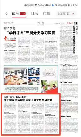 江西新闻、江西日报:九江学院高标准高质量开展党史学习教育