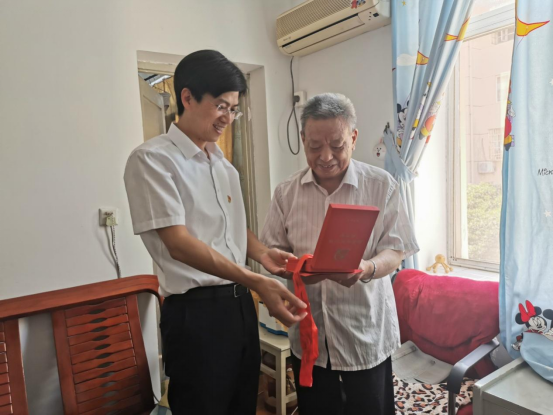 6月21日上午,校党委书记赵伟到浔东校区看望慰问了两位党龄在五十年以上的老同志冷占魁和于圣地,感谢他们为党的事业作出的贡献,并颁发了纪念章。赵伟表示,今年是建党100周年,党不会忘记老党员,他们为党的事业作出了贡献,给年轻党员们树立了榜样。他还询问了老人的身体和生活情况,并叮嘱学校相关部门要关心照顾好老党员,及时为他们排忧解难。