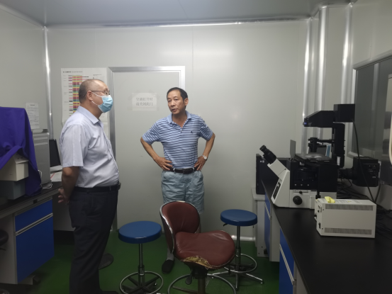 8月6日下午,校长陈小林在科研处负责人的陪同下到我校部分省级平台和独立科研机构,看望慰问暑期坚守岗位的科研人员,并检查实验室安全工作。