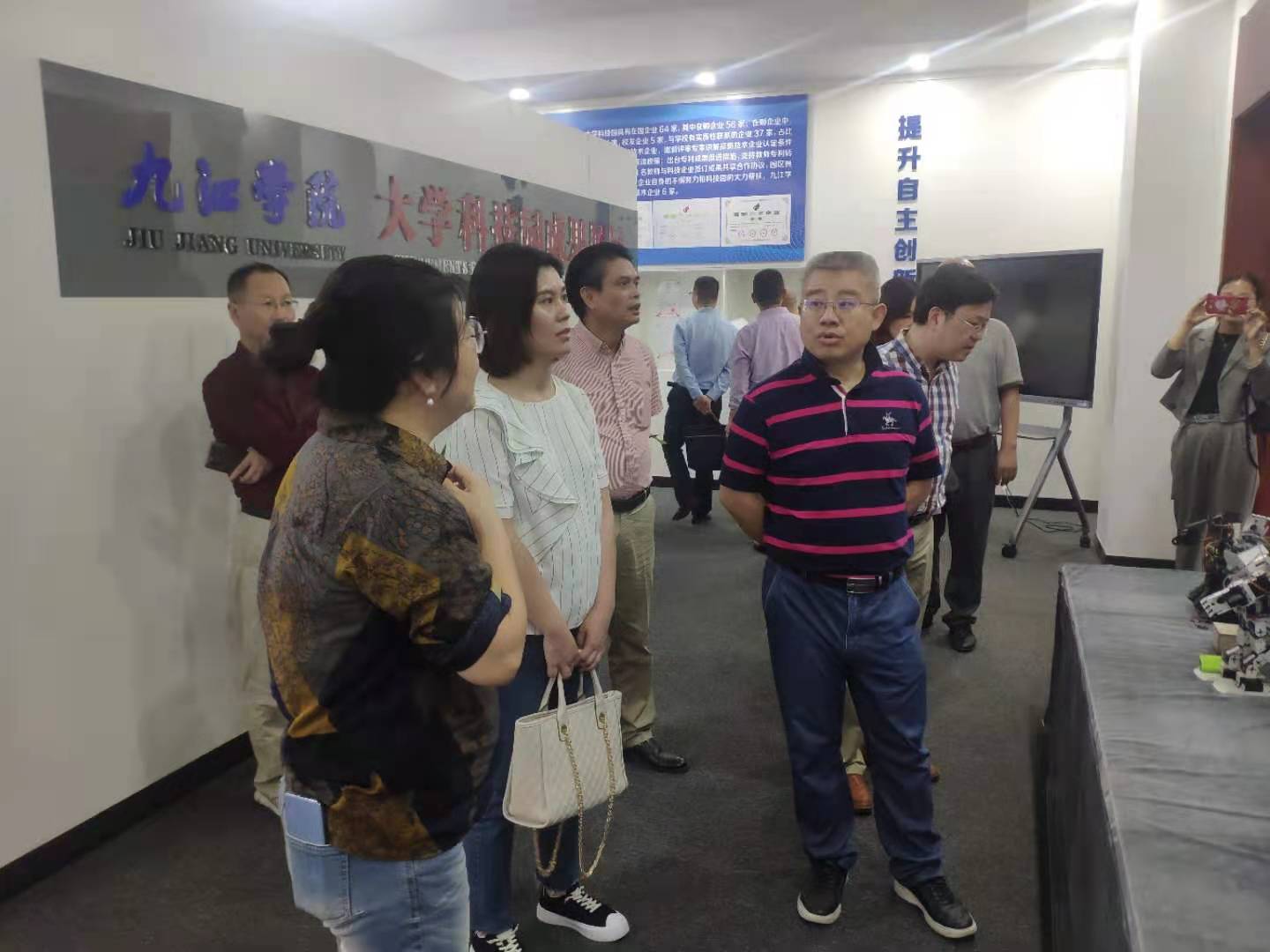 市工信局5个相关科室,市各县区5家设计类企业,学校创新创业学院、艺术学院、机械学院、材料学院、计算机学院、建工学院等单位30多人参加会议。期间,曹欢一行还参观了学校大学科技园科技成果展厅。