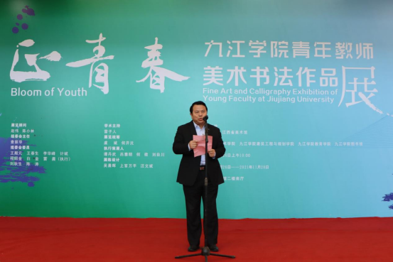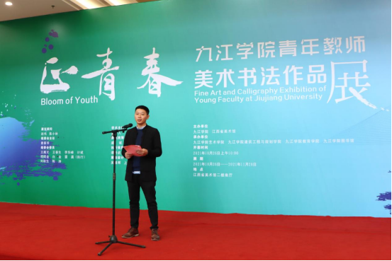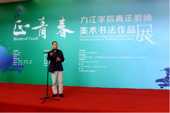 校党委副书记魏立平在致辞中指出,近年来,九江学院坚持“人才强校”战略,从中央美术学院、中国艺术研究院、列宾美术学院等引进了一批美术专业优秀人才,他们青春飞扬、朝气蓬勃,忠于艺术、勇于探索,为学校美术学科的建设和发展、为九江和江西省的艺术事业的繁荣注入了新生力量。