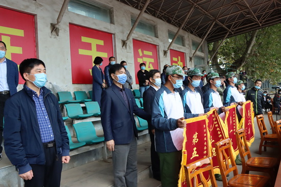 大会在雄壮激昂的国歌声中拉开帷幕,在全场师生肃立注目下,在军分区指战员庄严的军礼中,鲜艳的五星红旗冉冉升起。