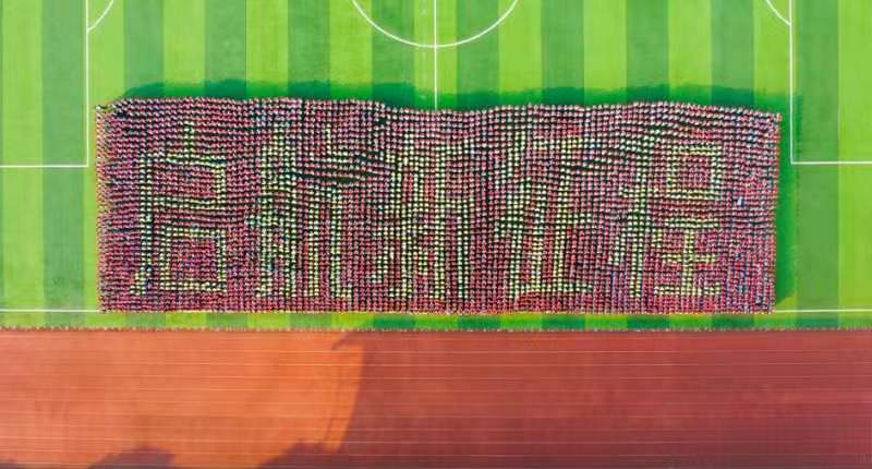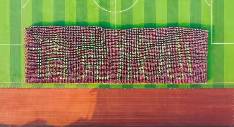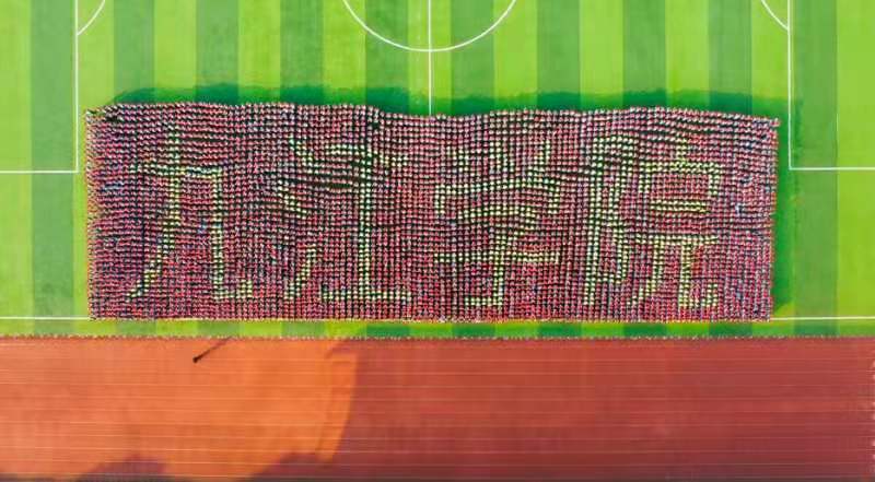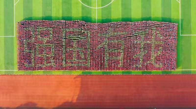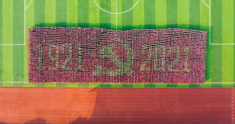 根据疫情防控要求,这次大会简化了相应流程。2021级新生们在会场上展示了团体图案表演和手舞表演。