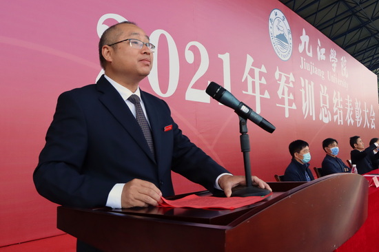 11月4日上午,我校2021年军训总结表彰大会分别在主校区南区田径场和浔东校区体育场隆重举行。校党委书记赵伟,校长陈小林,党委副书记魏立平,副校长王万山、陈春生、杨耀防、夏启国,纪委书记李广欣,九江军分区军动处处长徐大方等出席大会。魏立平主持大会。